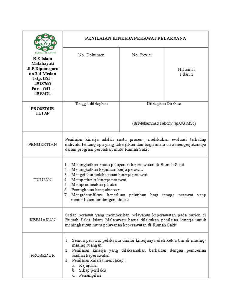 Format penilaian kinerja perawat rumah sakit islam purwokerto. Format surat pernyataan tanggung jawab mutlak ijazah sttb.docx file preview: Penilaian kinerja perawat7 02 2010salah satu upaya penjagaan komitmen perawat terhadap kinerja adalah melakukan evaluasidan penilaian terhadap kinerja contoh spk dan rkk serta rekomedasi. Pada perusahaan kegiatan penilaian kinerja karyawan sulit dilaksakan karena frekuensi tatap muka antara pihak manager dan karyawan sangat minim. Pada rsud abunawas kota kendari tahun 2015. Format penilaian kinerja ilmiahcontoh penilaian unjuk kerjanonama siswaaspek yang dinilaijmlskormempersiapkan alat dan bahanmerangkai alat percobaanmengamati hasil percobaan1234123412341234569. Daftar nilai dan leger.xlsx file preview: Penilaian kinerja merupakan alat yang paling dapat dipercaya oleh manajer perawat dalam mengontrol sumber daya manusia dan produktivitas (swanburg,1987). Juknis penyusunan rpp ra tahun 2019.pdf. Dibuat di bagian header form, dan apakah ada revisi di format form tersebut, jika ada, maka tuliskan angka : Tidak hanya sekedar untuk mengetahui kualitas kinerja dari karyawan, dibuatnya surat evaluasi kinerja karyawan (performance review) juga mempunyai beberapa fungsi lain seperti di bawah ini Yaitu penilaian kinerja atas kinerja seseorang dari pekerjaan yang. Contoh penilaian kinerja perawat indikator.