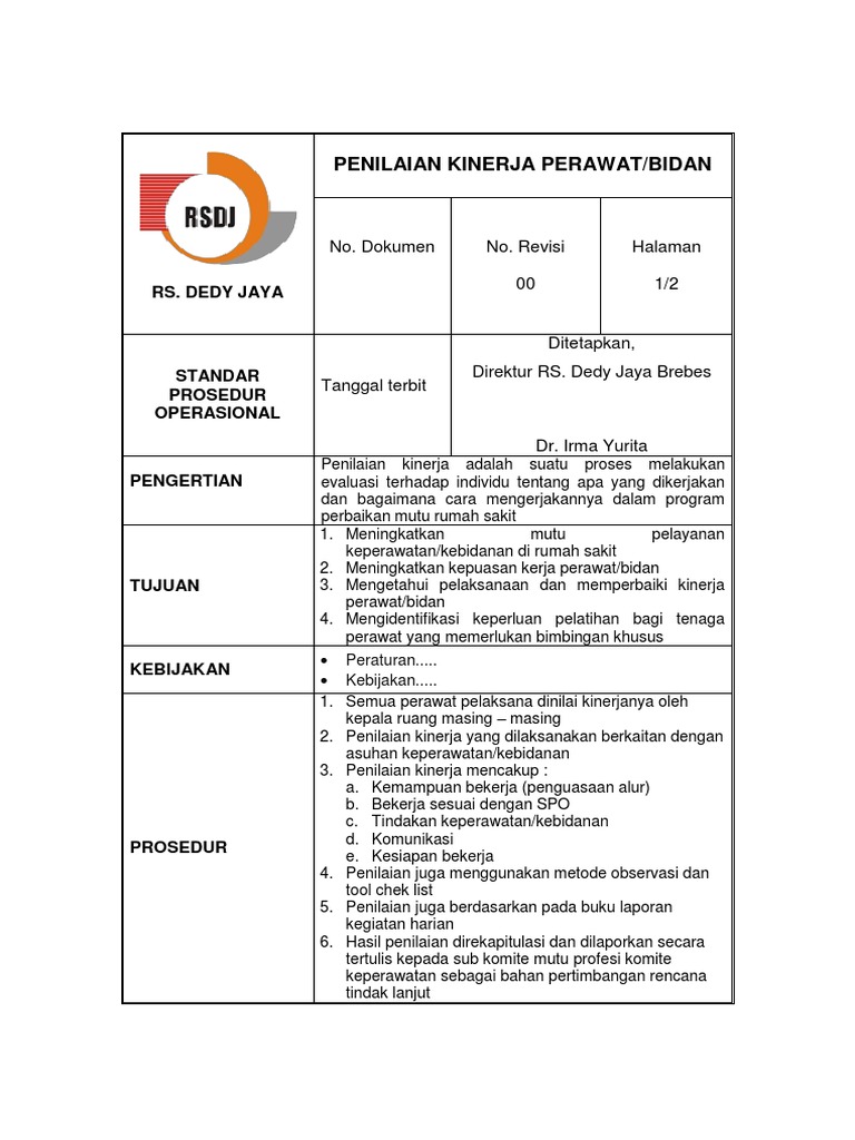 Unduh juga berkas lainnya terkait dengan pkg (penilaian kinerja kma 792 tahun 2018 tentang pedoman implementasi kurikulum ra.pdf. Pada rsud abunawas kota kendari tahun 2015. Tidak hanya sekedar untuk mengetahui kualitas kinerja dari karyawan, dibuatnya surat evaluasi kinerja karyawan (performance review) juga mempunyai beberapa fungsi lain seperti di bawah ini Contoh form penilaian karyawan security rumah sakit. Standar pengkajian pengumpulan data dilakukan dengan…