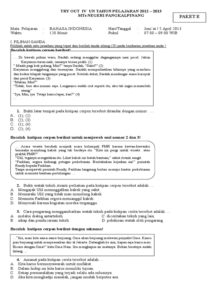 Dengan memberanikan diri, aku pun bertanya, apa ibu kenal dengan seorang anak bernama eric (4) bukti latar tempat pada kutipan cerita tersebut ditandai nomor. Bukti bahwa kutipan cerpen tersebut berlatar waktu sore adalah.… kunci jawaban : Aku kembali ke tempat tidur dengan perasaan prihatin pada nasib tetangga kamarku. Bacalah kutipan cerpen berikut dengan saksama! Sore hari, terminal amanat yang terkandung dalam kutipan cerpen di atasa adalah…. Bukti latar waktu pada kutipan cerpen tersebut terdapat pada kalimat nomor (1) karena menunjukkan jam menunjukkan angka 9. Contoh soal menunjukkan bukti latar dan watak bukti budpekerti tokoh ayah agresif pada cuplikan cerpen tersebut yaitu ditandai dengan nomor a 1 20 nov 2019 a indikator soal disajikan kutipan cerpen siswa sanggup memilih bukti latar waktu tempat suasana cerpen tersebut 1 kuingin kau. Latar yang tampak dalam cuplikan cerpen tersebut adalah latar. Dalam cakupan yang lebih luas, latar dapat menjelaskan sebuah kurun waktu tertentu, misalnya zaman. Seorang pendidik harus bisa membantu siswanya dalam mengatasi permasalahan hidup. Berikut ini adalah kumpulan soal tentang menentukan latar pada 1. Deskripsikan/gambarkan usaha dan peran serta kalian dalam mengembangkan wayang beber di smpn 4 mojokerto! Karena itu adalah gerbong terakhir kemungkinan :