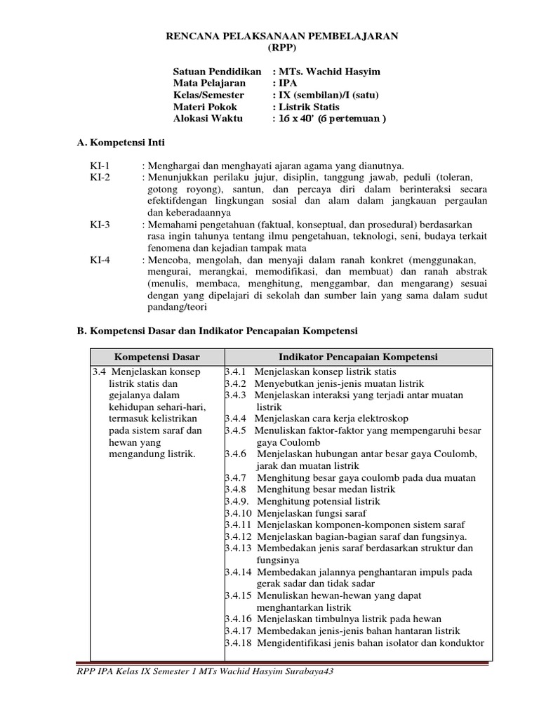 Listrik statis & dinamis (versi kelas 9) 1. Listrik statis (pelajaran ipa smp/ mts kelas ix) pengertian dari listrik statis adalah berkumpulnya muatan listrik pada suatu benda tertentu. Rpp listrik statis materi kelas 9 kurikulum 2013 revisi. Contoh rpp listrik dinamis smp kelas ix kurikulum 2013. Materi gerak pada makhluk hidup dan benda (unduh) materi rangka, otot, dan pesawat sederhana (unduh) materi struktur dan fungsi jaringantumbuhan serta pemanfaatannya dalam teknologi (unduh) materi sifat bahan dan pemanfaatannya dalam kehidupan (unduh)